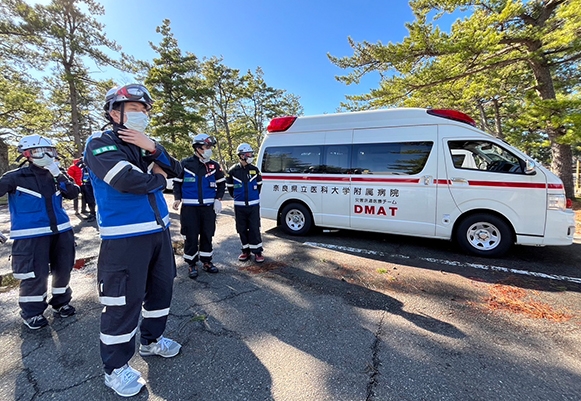 医師、看護師、救急救命士、事務官から構成され、災害や事故の際にいち早く現場に駆けつけ、救命医療を提供する医療チームの事です。