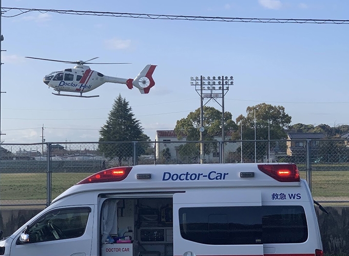 ドクターカーやドクターヘリなど、救急医が直接現場に赴いて⾏う医療です。