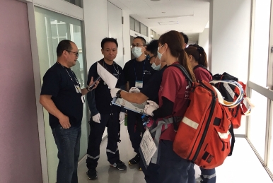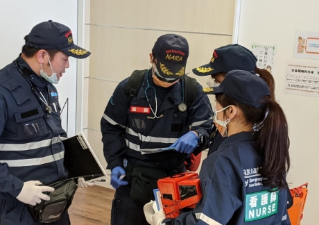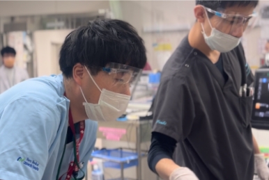 奈良医大高度救命救急センターのホスピタル・パラメディックは、救急外来(ER)において医師・看護師と密に連携し、重症患者の初期診療に深く参画します。また院内メディカル・コントロール体制のもと、静脈路確保やアドレナリン投与、高度な気道確保といった救命処置を実施し、一分一秒を争う現場でその卓越したスキルを発揮します。